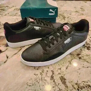 Puma Women's Match Lo Basic Sports Black Leather Sneaker Tennis Shoe