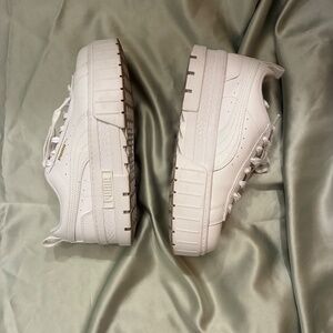 Puma Women's Mayze Mis Platform White Lace Up Sneakers Size 6.5 Worn Once VGUC+