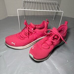 Step up your style with these vibrant pink athletic shoes from Puma. Perfect for workouts or casual outings, these shoes offer both comfort and flair.