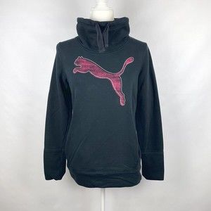 Puma Women's S Pink Speed Cat Long Sleeve Black Mock Neck Pullover Sweatshirt.