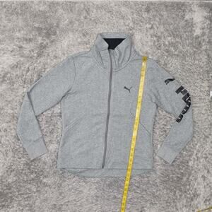 Puma Women's Size S Basic Jacket Gray Cotton Blend Zip Long Sleeve