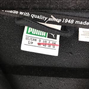 Puma Women's Small Full Zip Black Hooded Sweatshirt Satin Ribbon Stripe Back Tie