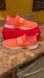 Vibrant coral Puma sneakers with sleek white details.EUC