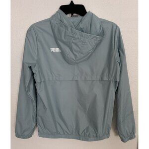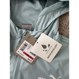 The windbreaker's versatile nature makes it suitable for numerous occasions, from hitting the gym to running errands. The XS size fits regularly, complemented by a subtle logo theme that adds a touch of sporty elegance. Whether you're engaging in athleisure activities or simply seeking a reliable layer for unpredictable weather, this Puma jacket is a smart addition to your wardrobe.