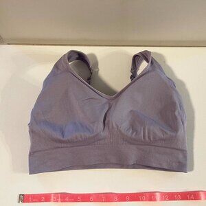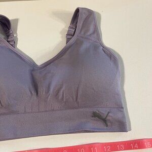 Puma Womens Sports Bra Purple W/ Logo Adjustable Strap Pullover Padded Large