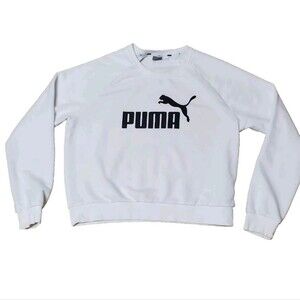 Puma Womens Sz Medium White Logo Crew Neck Cotton Blend Sweatshirt