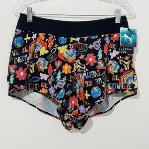 Puma Women's Volley Shorts Pride Print w/ Interior Bikini Size Large NWT