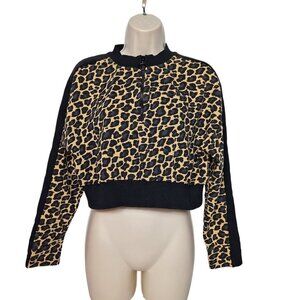 Puma Women's Wild Pack T7 Cropped Sweatshirt Size XL Leopard Print Black Brown