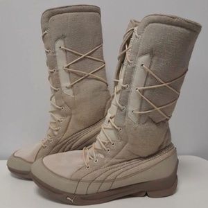 Combat boot like, puma winter flex boots, tan boots, brown boots, cream boots, puma white boots, suede leather like boots, unique boots, unique shoes, one of a kind boots, one of a kind shoes, Rain boot, snow boot, winter boot, warm boot, designer boot, insulated boots, rubber boot, tall boot, heeled boot, designer boots, laced up boots, brown boots, athletic boots, unique Puma boots shoes, athletic shoe boots, retro boots, girly boots shoes, apres outdoor boots, calf high boots, mid calf boots, insulated boots, waterproof boots, rain boots, puma boots, casual boots, women’s boots, cougar boots, sneaker boots, wrap around lace boots, women’s military like boots