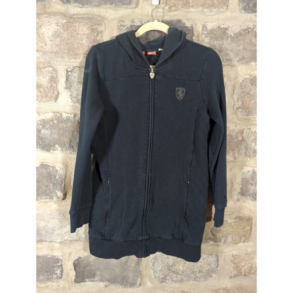 Puma X Ferrari Sweatshirt Woman's Medium Black Hoodie Full Zip Racing Long