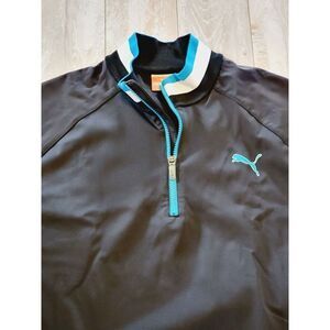 Elevate your style with this Puma shirt for men in size XL. The solid black color and crew neckline give it a hipster 80s look, perfect for all seasons. The shirt features a convenient half zip and zipper pockets, making it both fashionable and functional. It is made of polyester fabric that is machine washable for easy care.