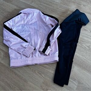 Chic Puma activewear in pink and black. Features a zip-up top and matching bottoms.