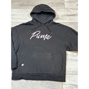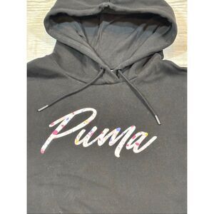 Puma black hoodie sweatshirt with floral/paint splatter/tie-dye logo size M