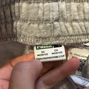 Puma boys gray and black cotton sweatpants size medium, small stain on seam of left leg as shown in pictures