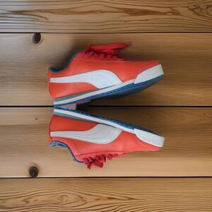 Orange and Blue Puma Ferrari Roma sneakers. Previously owned. Great Condition! A great pop of color to any wardrobe.