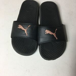 Puma Cool Cat rose gold glitter black slides sandals size 8 pre owned in good used condition signs of wear on the soles small peeling on the front soles see pictures any question please message.