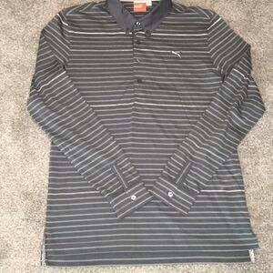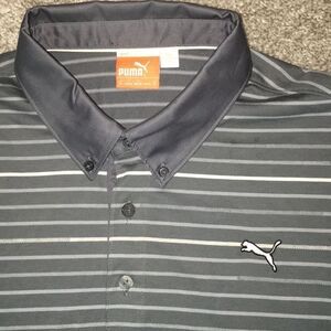 Puma dry cell button down collar Gray stripe Golf Polo shirt M mens slim fit