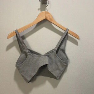 Puma woman’s grey sports bra. It’s a size medium. It’s super cute and in good condition.