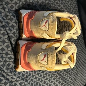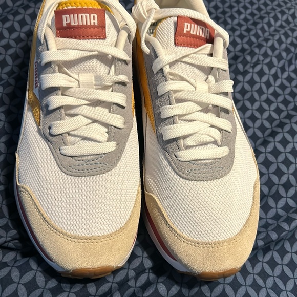 Puma platforms, pink blush, and yellow gold and black. This shoe runs small can fit as a 7 1/2 Worn once not in box.