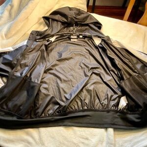 Puma windbreaker. Black with classic white stripe and logo. Elastic comfort waist band for running. Like new condition, size women’s L. Fits like a size 10-12.