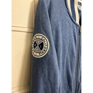 Puma size small blue zip up letterman jacket in a sweatshirt material. Great condition. Measures 22” from armpit to armpit and 30” long.