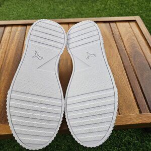 Puma Carina 2.0 Soft Foam Optimal Comfort 100% Synthetic sneaker size 6.5 Made for a narrow foot, only wore a few times. I've inserted pull-on elastic laces, but you can replace them with your own. No defects, no scratches, no stains. Smoke free, pet free home. Thank you :)