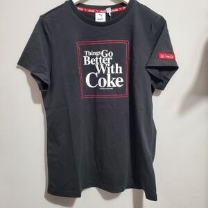 Puma x Coca-Cola Womens Sz L "Things Go Better With Coke" Black/Red Tee Shirt.
