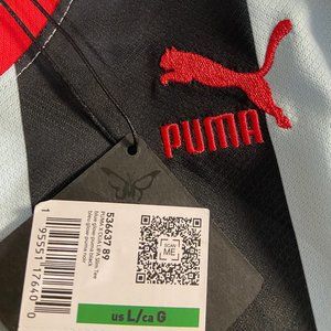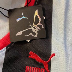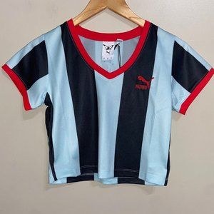 Puma x Dua Lipa Striped Cropped Jersey Shirt Blue Tops Womens 536637-89 NEW