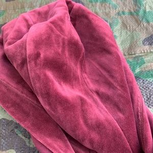 Cuffs, waist, inside of hood, pockets, and zipper are trimmed with velvet/velour