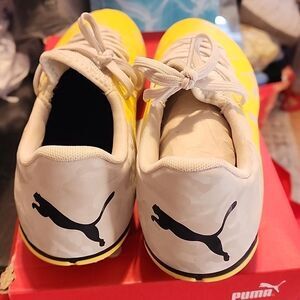 Stylish Puma soccer cleats. Bright yellow with white accents. Perfect for the field. BRAND NEW IN BOX