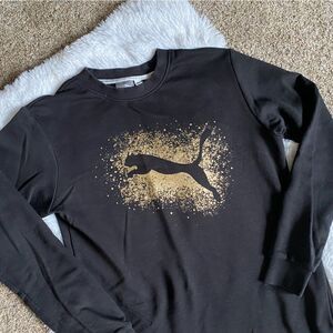 Puma Long Sleeve Black Gold Sweatshirt Dress Womens Size Small