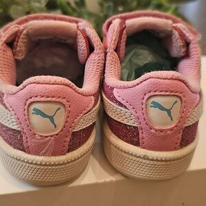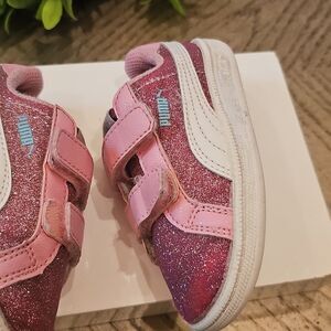 Puma Pink Glitter Sneakers Size 6 with Velcro Closure