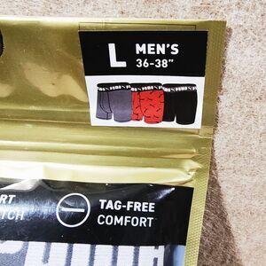 Experience ultimate comfort and support with this 3 pack of Puma's boxer briefs, designed in sleek black, red and gray tones. Made from a moisture wicking stretchy, athletic material, these briefs offer a snug fit and a 6 inch inseam length, perfect for active days. The iconic Puma waistband adds a comfortable stylish touch to your everyday essentials.