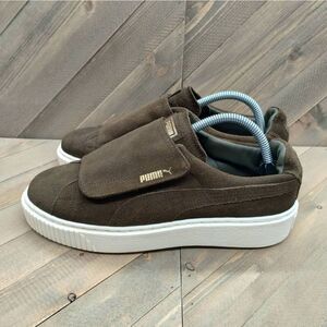 Puma Suede Platform Strap Casual Sneakers Womens Size 10 Olive Green Shoes
