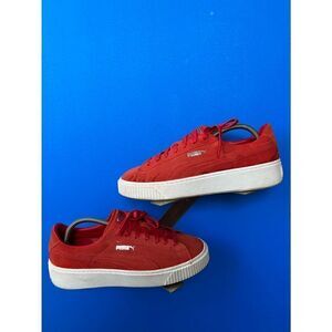 Puma Suede Platform Orange Leather Womens Lace Up Trainers 362223 03