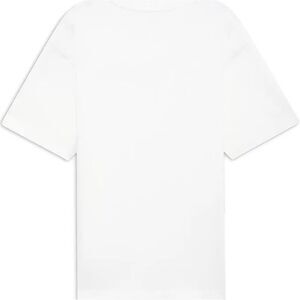 White short sleeve tee with gold and silver text. Casual and trendy design.