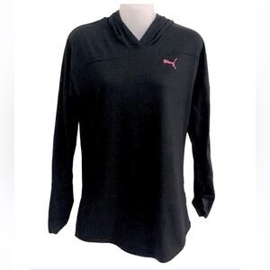 Puma Black hooded shirt Pink puma symbol Length from back of collar to hem - 27” Pit-pit - 18.5” Very Good Condition! Same or next day shipping!