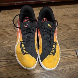 Dynamic Puma All-Pro NITRO basketball shoes in black and yellow. Stylish and comfortable for active wear. Barely used, like new!