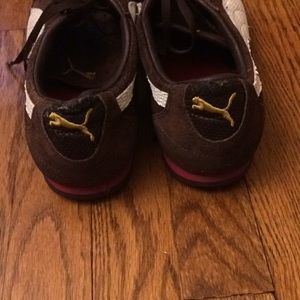 The ultimate in Puma cool! Brown suede. Used- with signs of wear, but tons of life left! Please view all pics and ask questions before purchasing. US size women’s 9/7.5 men’s