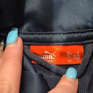 Puma womens teal track jacket size small, small stain on skeeve as shown in pictures