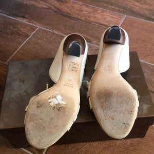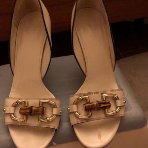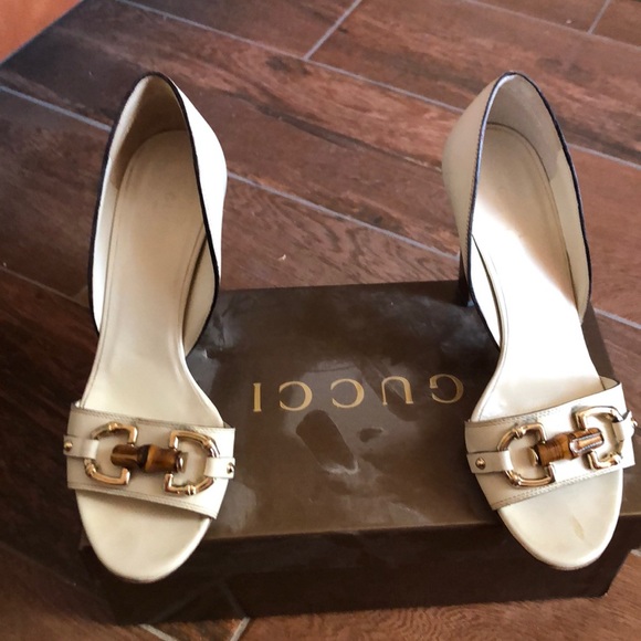 Gucci white open toe pump. Good condition. Just bottom sores scratch. Only worned 2-3 time.come with box.
