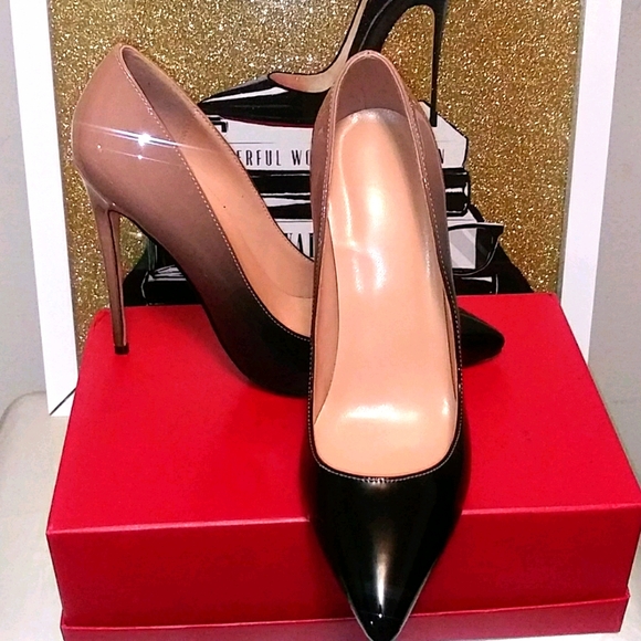 Black & tan patent leather pointy ombre pumps