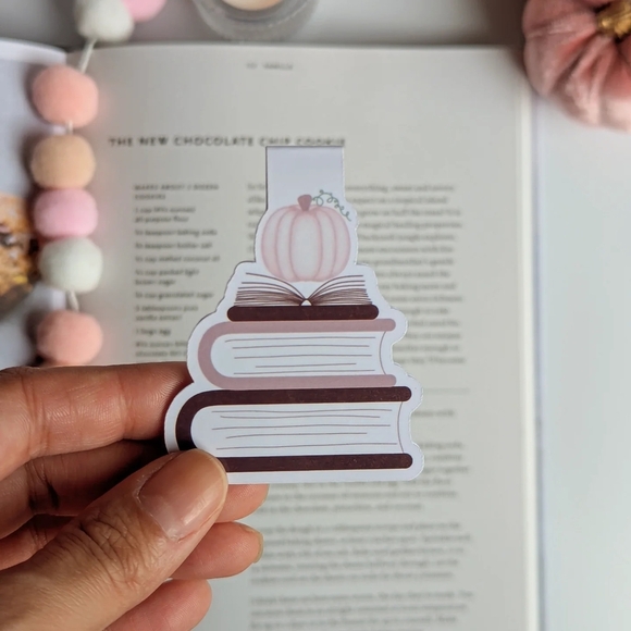 Cute sticker featuring a pumpkin on stacked books. Perfect for book lovers and a great way to keep your place for your current or favorite read, journal or planner.