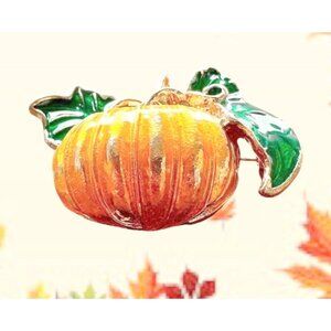 Pumpkin Brooch Pin New Fall Leaves Thanksgiving Bountiful Harvest Festive Autumn