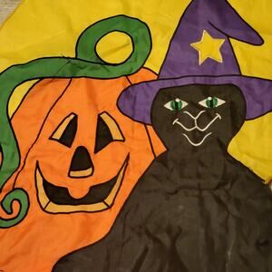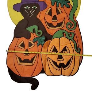 Pumpkin Cute Black Cat Halloween House Garden Flag 46" x 27" Layered Vtg