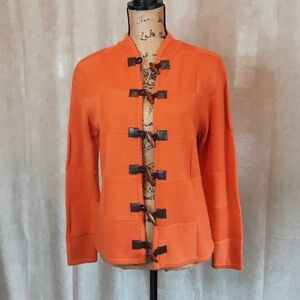 Pumpkin Orange Acrylic Button Cardigan Wood Leather Buttons Size S