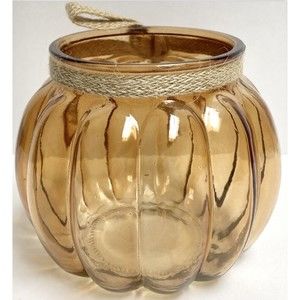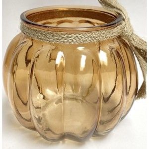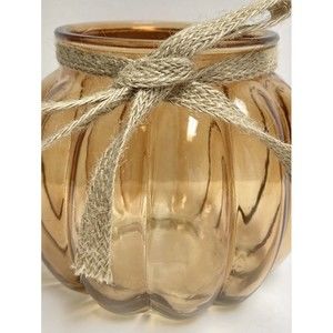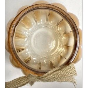 Pumpkin Orange Glass Candy Dish / Candle Holder With Burlap Bow Fall Autumn