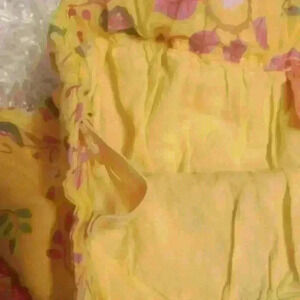 Yellow. Pink, orange floral. Fully lined in yellow.