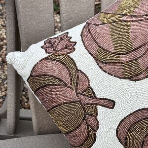 For Sale is a Pumpkin Patch Beaded Gold Pumpkin Throw Pillow Fall Thanksgiving Decor