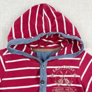 Pumpkin Patch Henley Hoodie Boys Size 3 Red White Striped Hooded T-Shirt Rock